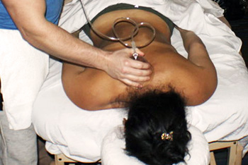 The Medicupping machine uses suction to lift tissue as the cup moves. This helps eliminate debris and release rigid soft tissue.